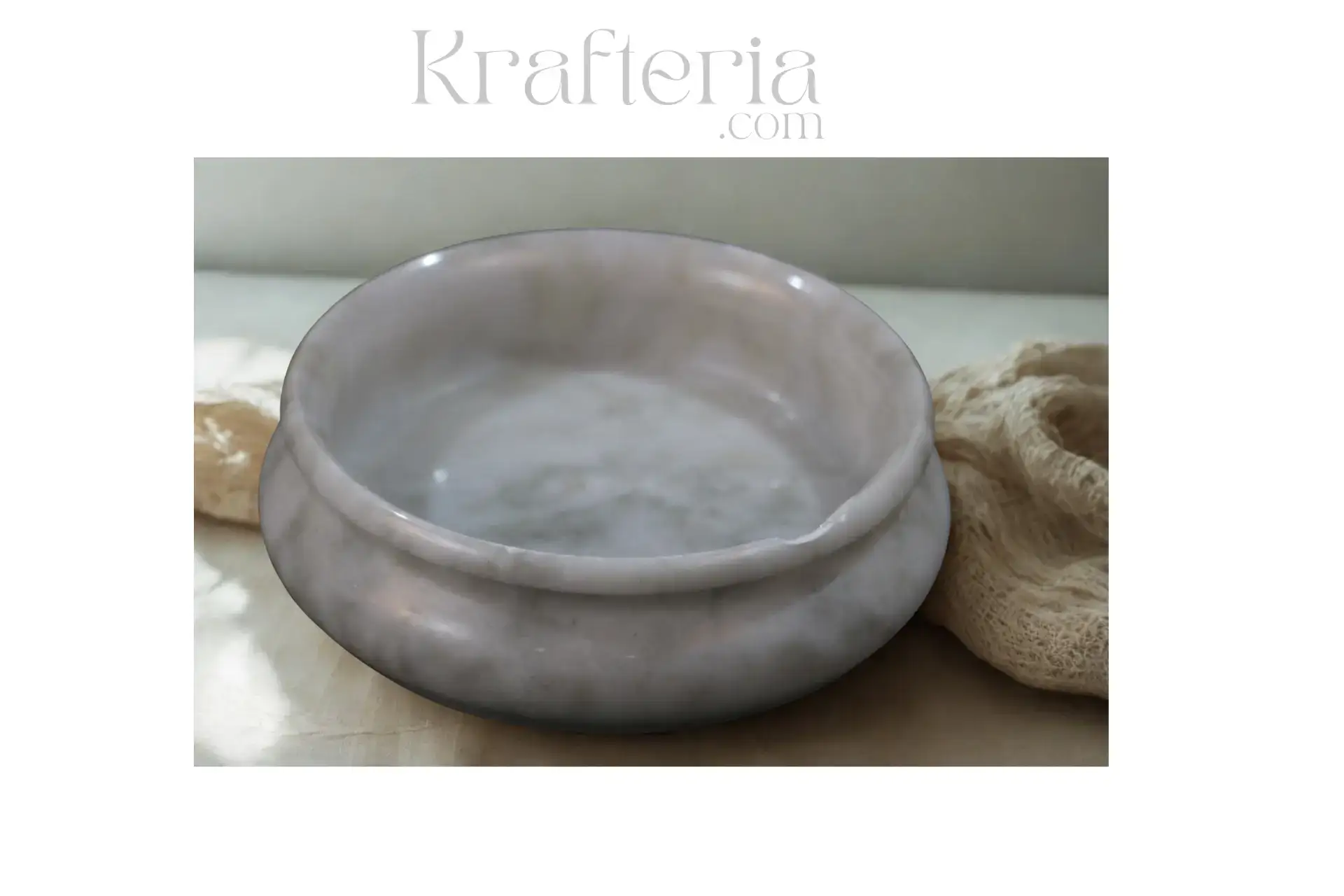 Skilled artisans from Rajasthan transform raw blocks of white marble into mesmerizing art pieces. The crafting process involves meticulous hand-carving to shape the Marble home decor bowl into stunning forms. Their craftsmanship extends across various marble artworks including statues of deities, decorative panels, jali latticed screens, and delicately carved tabletops. Each piece often features motifs inspired by Rajput, Mughal, and traditional Rajasthani art.